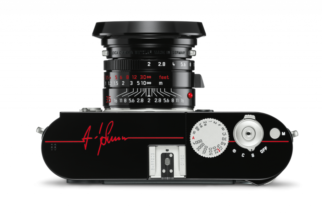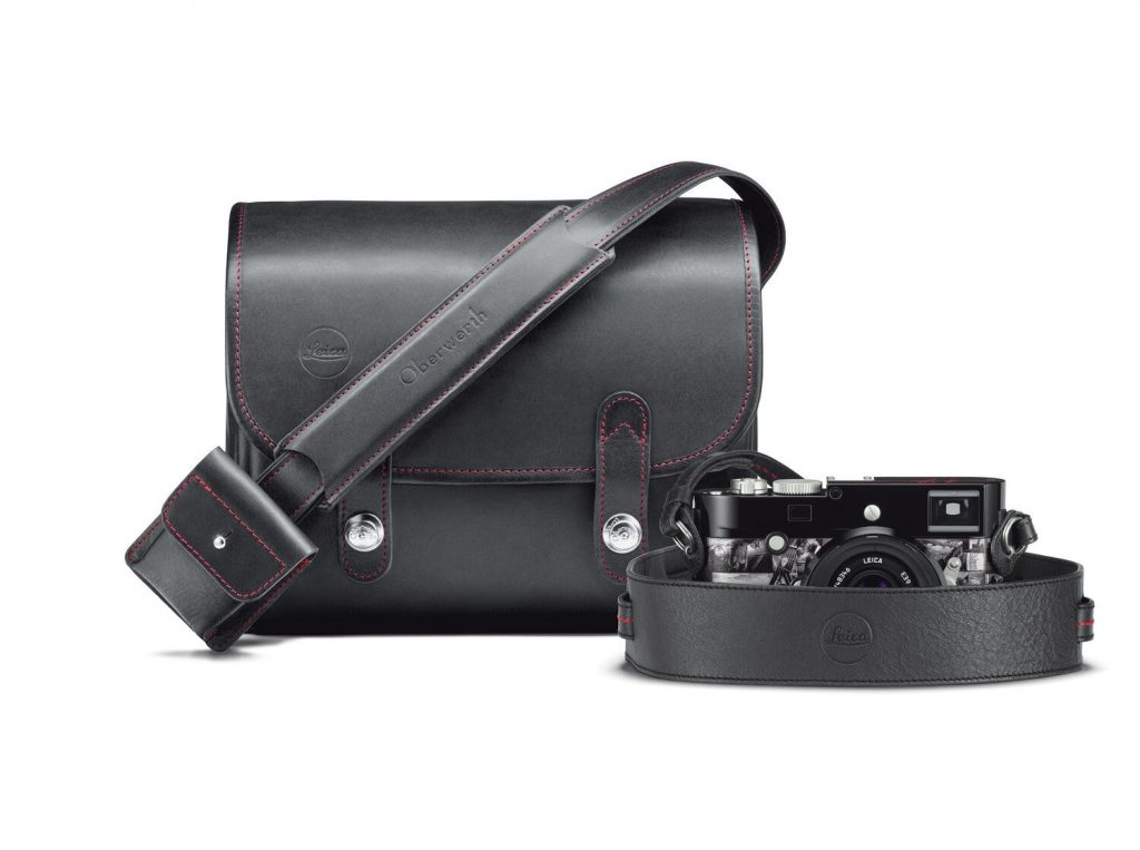 Coupled with a glossy paint finish, silver chrome operational elements and a gorgeous red line engraving on the top cap, the camera is truly a sight to behold. The set is complete with a Leica Summicron-M f/2 35 ASPH. lens – also with a glossy paint finish – adorned with a vintage round lens hood, a Fender guitar-inspired camera strap and an OBERWETH leather black system bag.